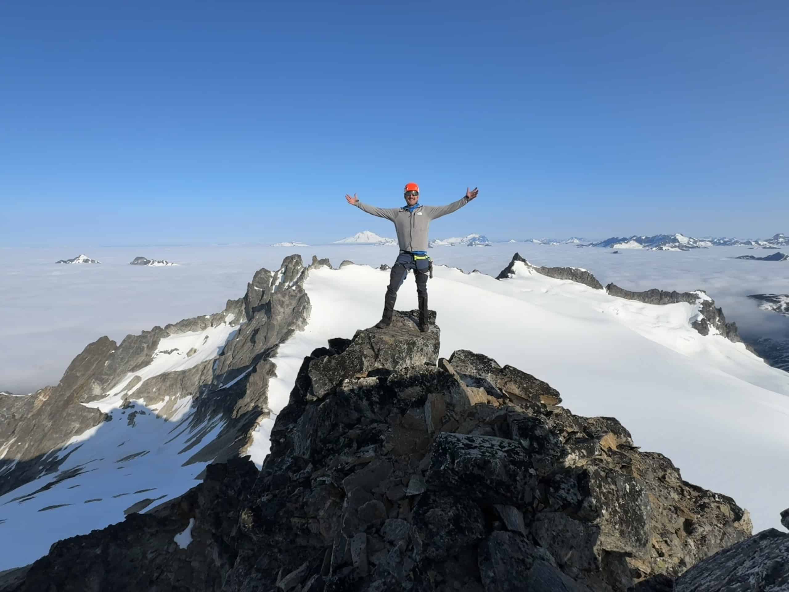 At the highest point I find a steel post that once held the legendary fire lookout. A glint catches my eye. I am standing on shattered and melted fragments of glass. I squat down and pick one up. Its smooth and sharp contours sit lightly in my hand. It must be the glass from the lookout, melted time and time again by lightning strikes from the winter storms that rage against these peaks. I look out to the many-layered mountains that encompass this place and feel at once timeless and firmly grounded to this mortal moment. I can hardly believe I made it to the top. The reward of standing silently in these primordial mountains as the sun sets is nearly unfathomable.